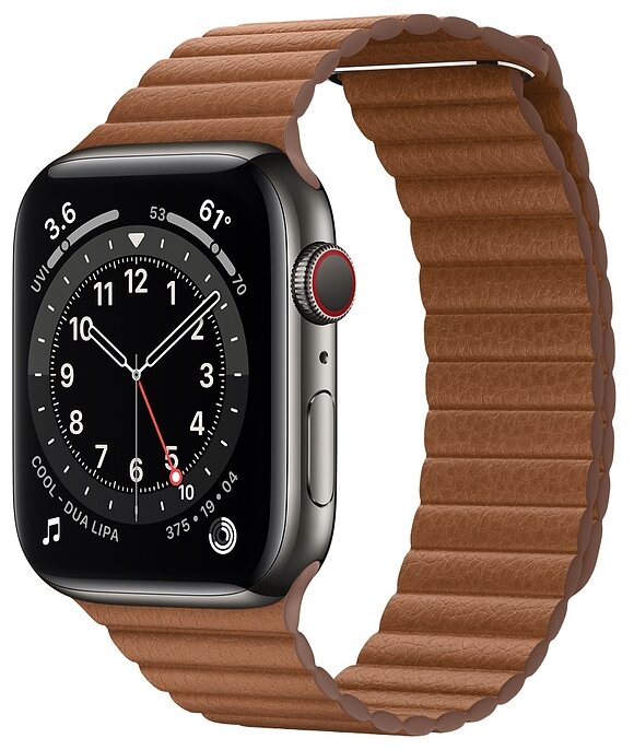 Apple Watch Series 6 GPS + Cellular 44mm Stainless Steel Case with Leather Loop