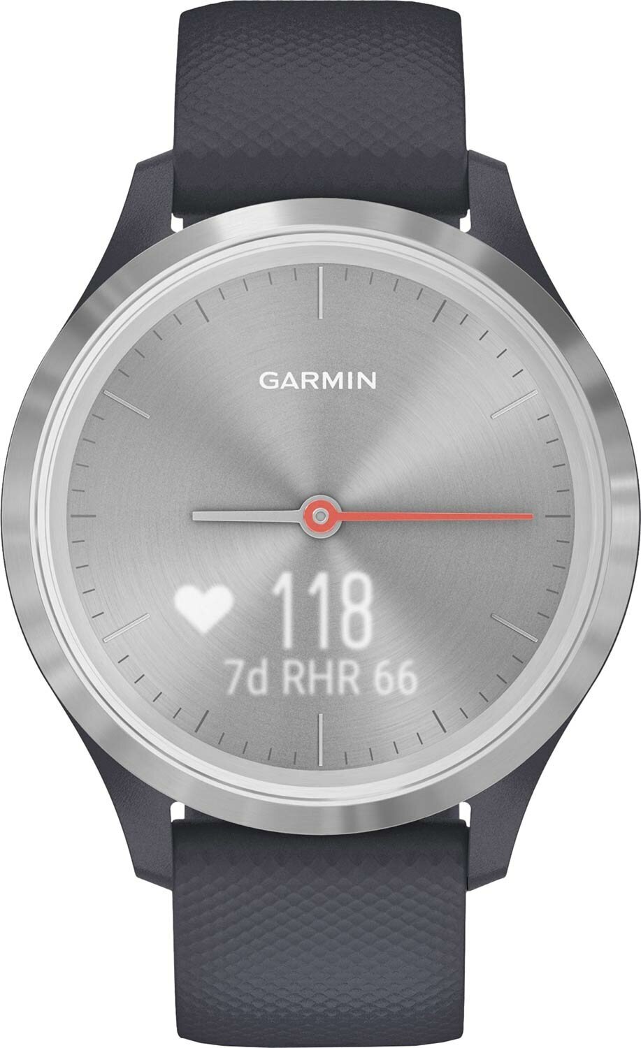 Alarm clock, smartphone player control, anti-lost function, VIRB remote control, calculation of VO2 max and sports age, stress monitoring; additional silicone strap included, suitable for environments