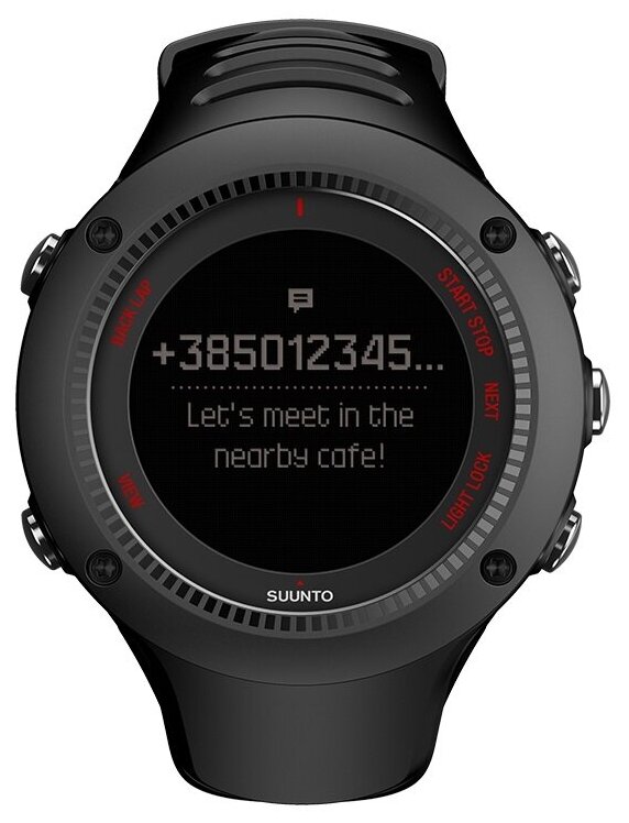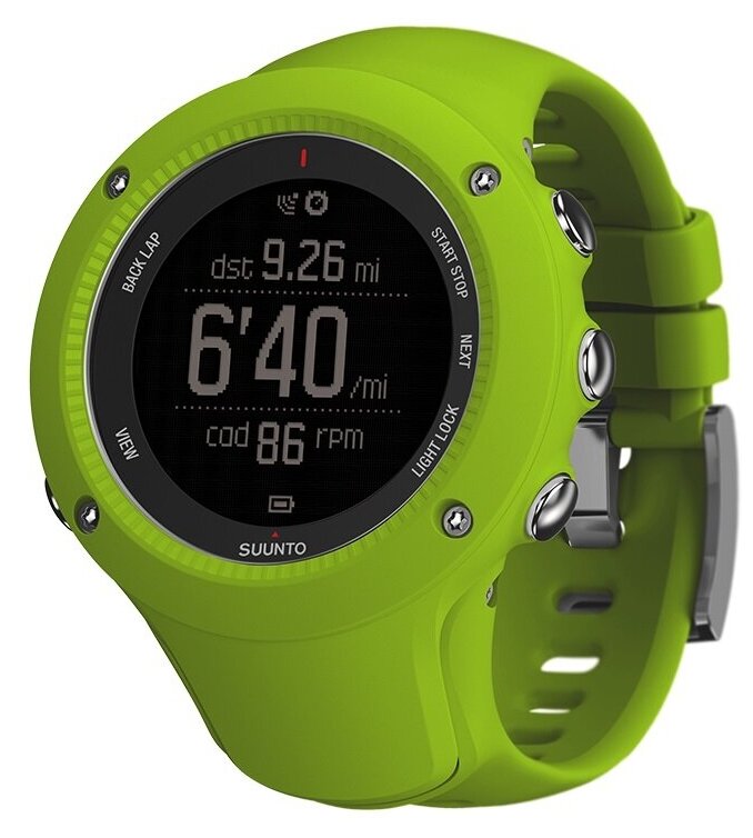 The device is compatible with Movescount; Bluetooth Smart support; data on running, cycling, swimming - yes, except for cycling power and swimming performance; case material - polyamide; equipment: clock, USB-