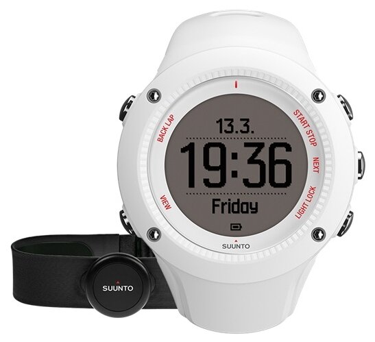 The device is compatible with Movescount; Bluetooth Smart support; data on running, cycling, swimming - yes, except for cycling power and swimming performance; case material - polyamide; equipment: watch, ka