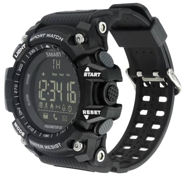 Type: smart watch, features: water resistant, OS compatible: Android, iOS, measurements: calorie monitoring, physical activity monitoring, stopwatch