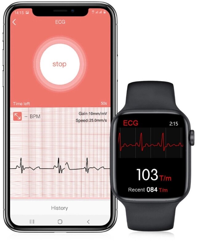 Type: smart watch, features: waterproof, measurements: ECG, calorie monitoring, sleep monitoring, physical activity monitoring, continuous heart rate measurement, stopwatch, timer, blood oxygen level, heart rate monitor: sun