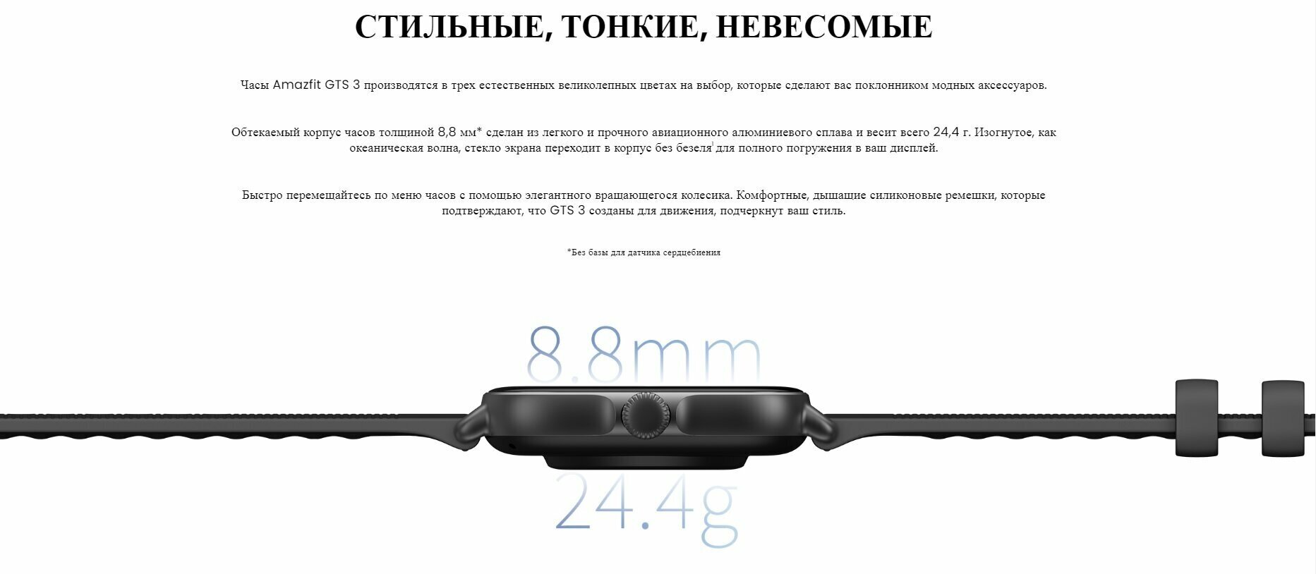Altimeter; included: Amazfit GTS 3 smart watch including standard strap, magnetic charging stand, instruction manual; strap width: 20mm