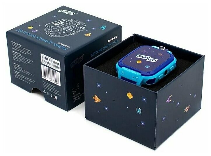 Children's smart watch RunGo K1, 1.4, 128x128, SIM, 2G, LBS, camera, video call, SOS, blue