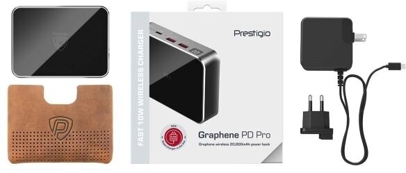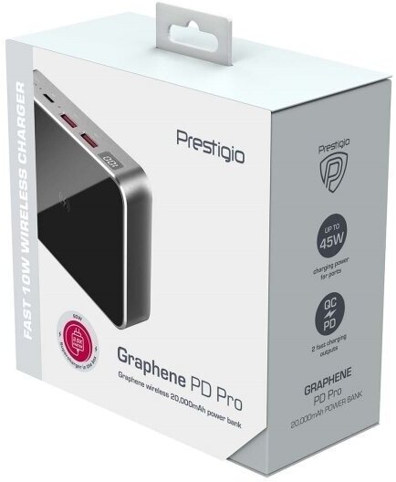 Capacity: 20000 mAh, compatibility: wireless charging, fast charging, laptop charging, max. output current: 3A, weight: 410g