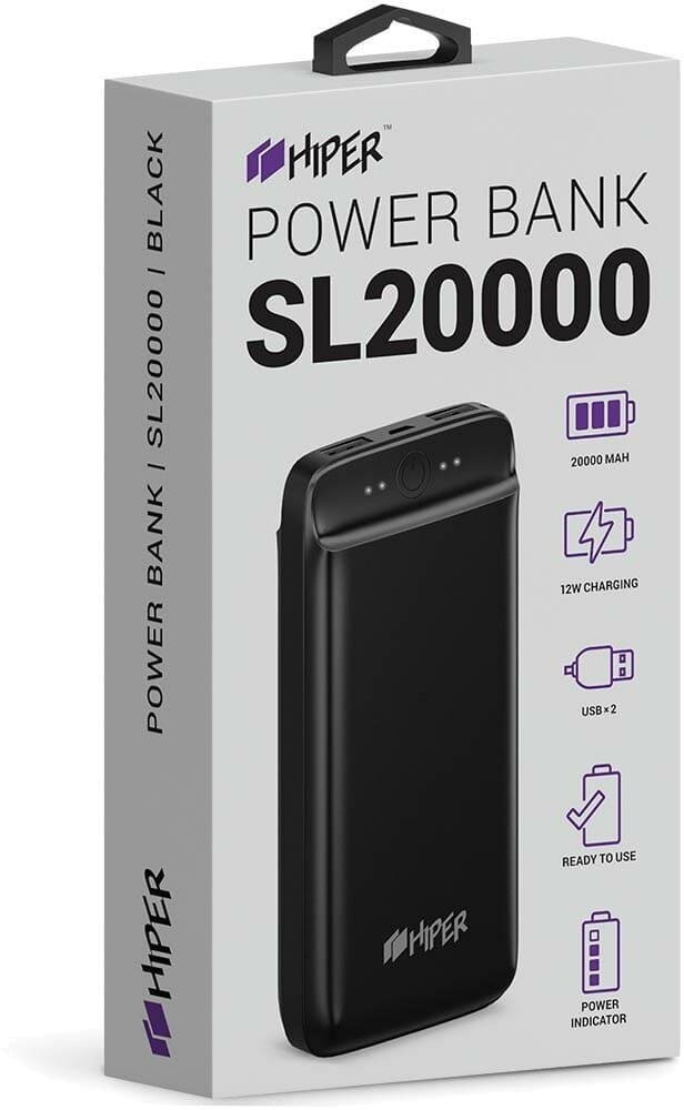 External 20000 mAh, Li-Pol, 2xUSB, 2.1A+2.1A, Hiper, white, SL20000