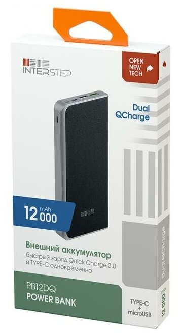 Capacity: 12000 mAh, compatibility: fast charging, max. output current: 3A, weight: 260g