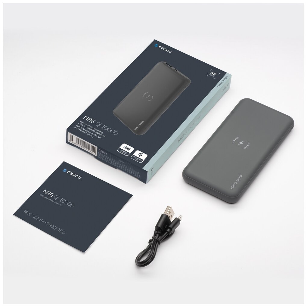 Capacity: 10000 mAh, compatibility: wireless charging, fast charging, max. output current: 3A, weight: 220g