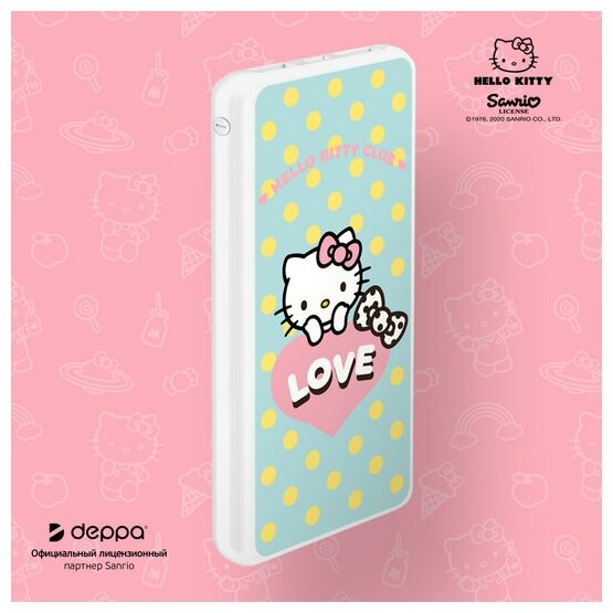 External battery 10000 mAh, 2 USB, 1 MICRO, 2.1A, Li-pol, white, Hello Kitty 5, multi, Deppa 301087