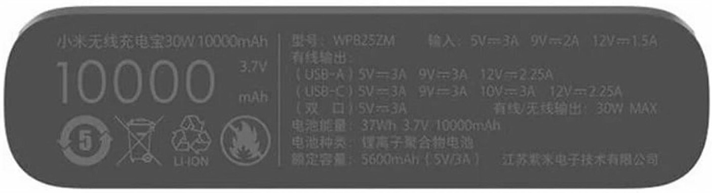 Description: Capacity: 10000 mAh, compatibility: wireless charging, fast charging, laptop charging, For mobile phone, For watches, Universal, max. output current: 3A, features: charging two devices, charge indicator