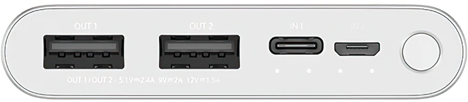 Capacity: 10000 mAh, compatibility: fast charging, universal, max. output current: 3A, features: dual device charging, charge indicator, Quick Charge, weight: 223g