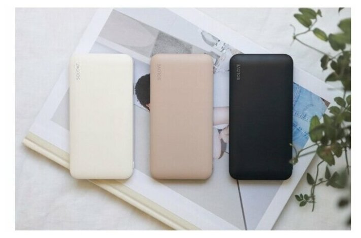 External battery Power Bank Xiaomi Mi SOLOVE 10000mAh Dual USB/Type-C with built-in two cables USB/Type-C and Lightning W7 Beige, beige