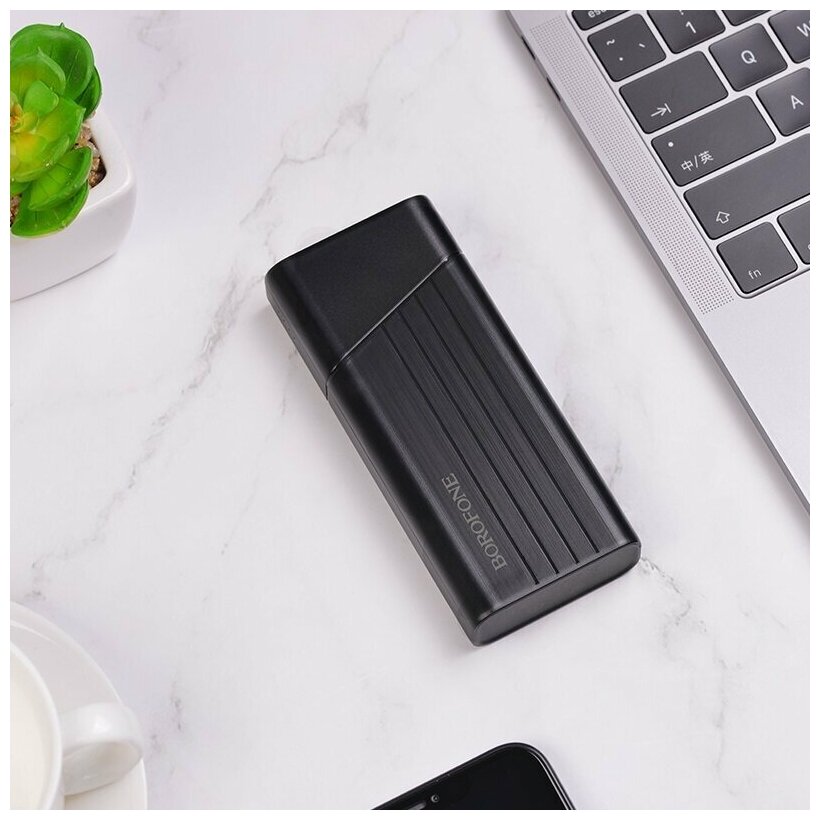 Capacity: 10000 mAh, max. output current: 2A, weight: 195g
