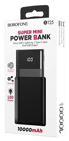 Capacity: 10000 mAh, max. output current: 2A, weight: 204g