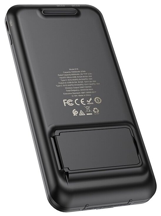 Capacity: 10000 mAh, compatibility: wireless charging, fast charging, max. output current: 3A