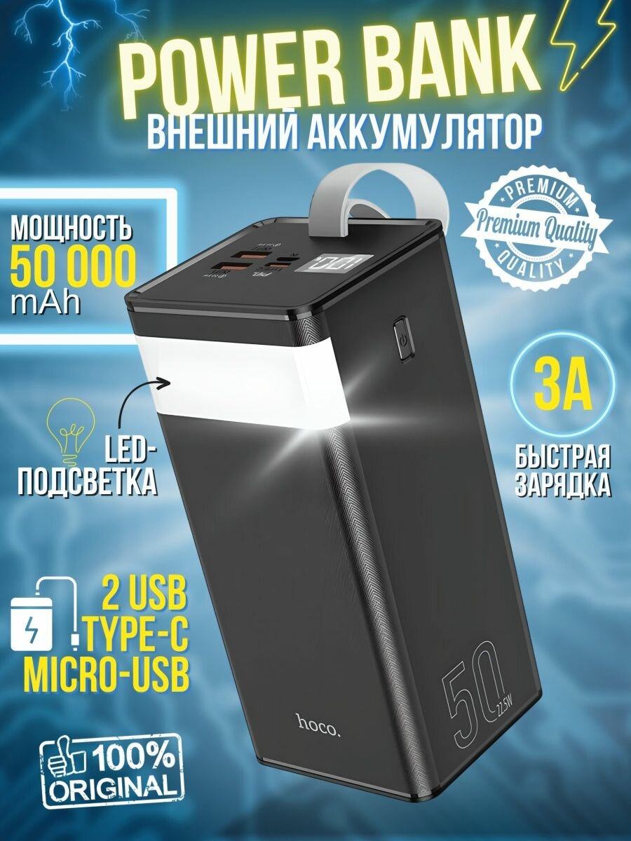 External Power Bank Hoco J86A 50000 mAh, LED display and flashlight, black.
