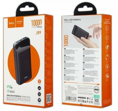 Capacity: 10000 mAh, compatibility: fast charging, max. output current: 3A, weight: 234g