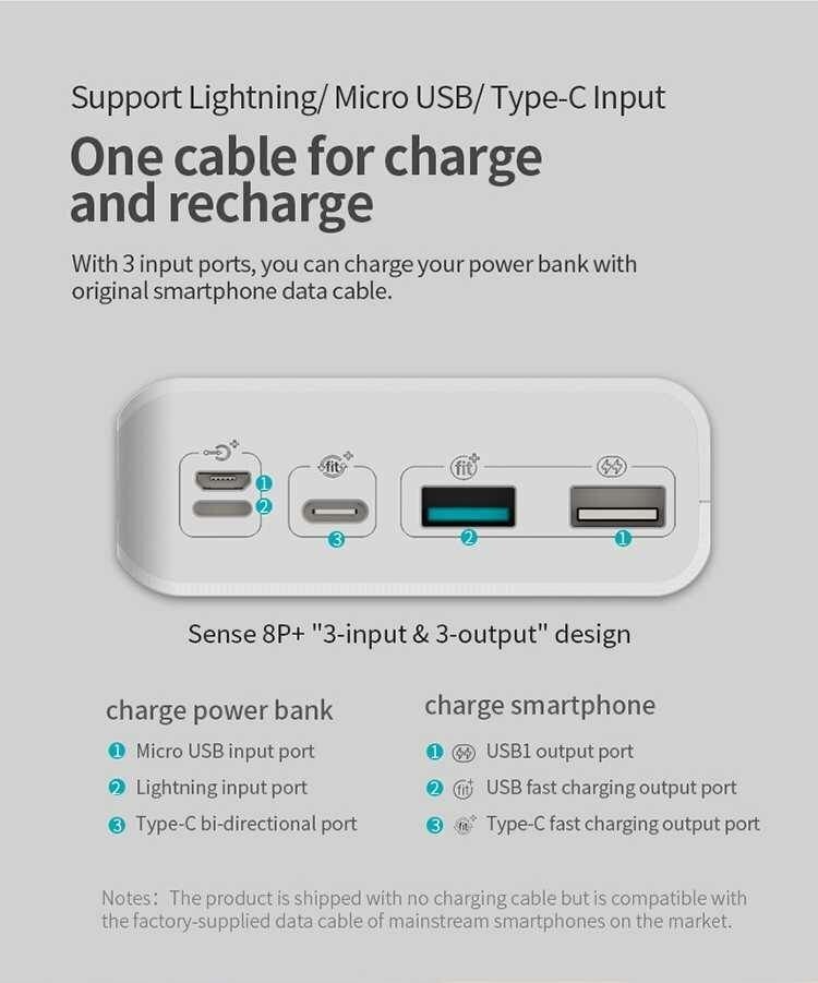 Input connectors: micro USB/Lightning/USB Type-C