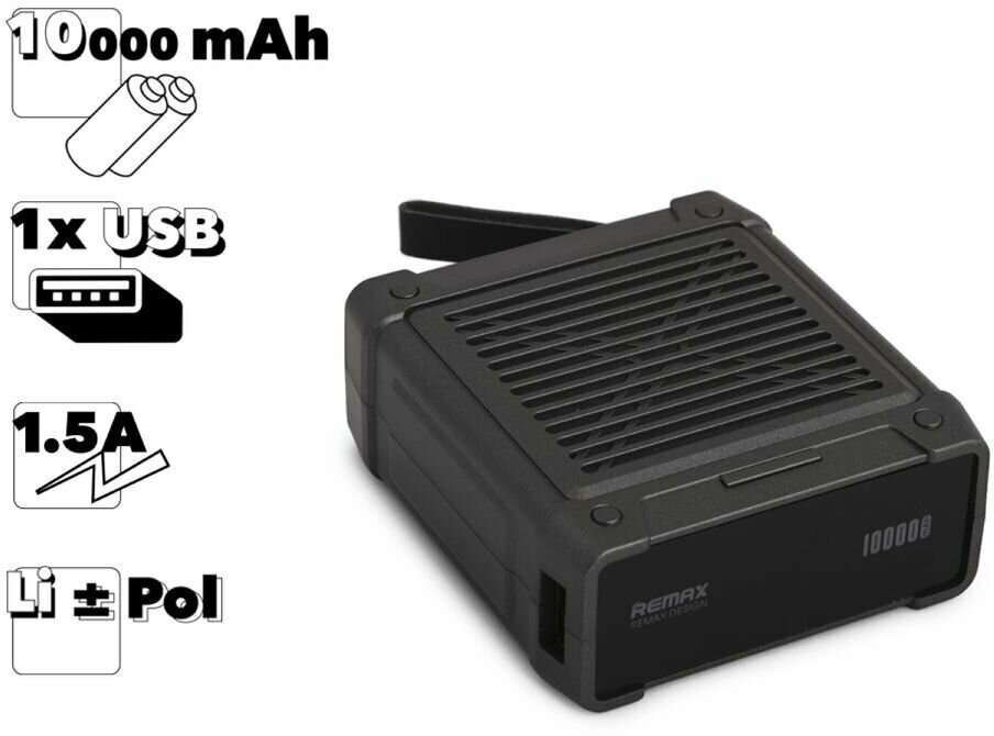 Capacity: 10000 mAh, max. output current: 2.10 A, weight: 220 g