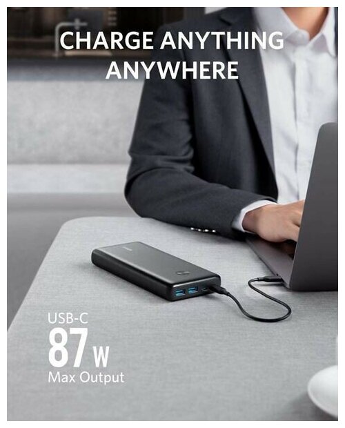 External Anker Power Bank A1291, 25600 mAh, wireless, fast charging, black