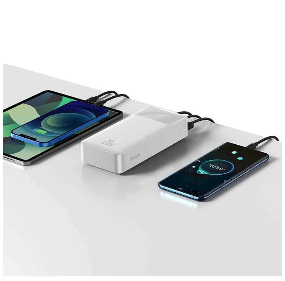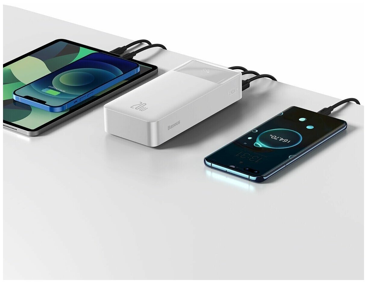 Capacity: 30000 mAh, compatibility: fast charging, max. output current: 3A, weight: 645g