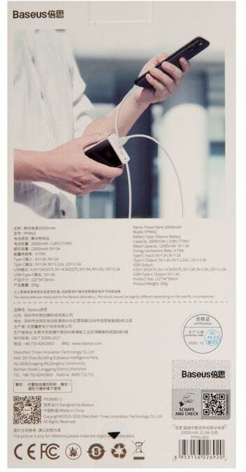 Capacity: 20000 mAh, compatible: Apple, Asus, HTC, Honor, Huawei, LG, Lenovo, Meizu, Nokia, OnePlus, Realme, Samsung, Sony, Xiaomi, max. output current: 3A