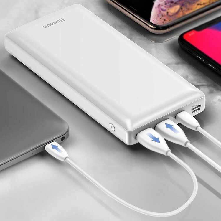 Capacity: 30000 mAh, compatibility: fast charging, universal, max. output current: 3A, features: dual device charging, charge indicator, Power Delivery fast charging, Quick Charge fast charging, laptop charging, weight: 622g
