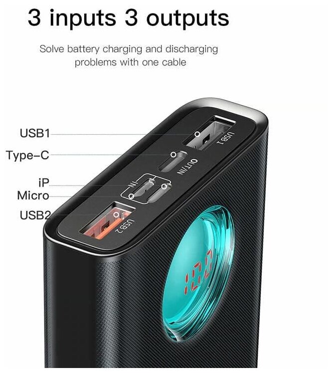 Capacity: 20000 mAh, compatibility: fast charging