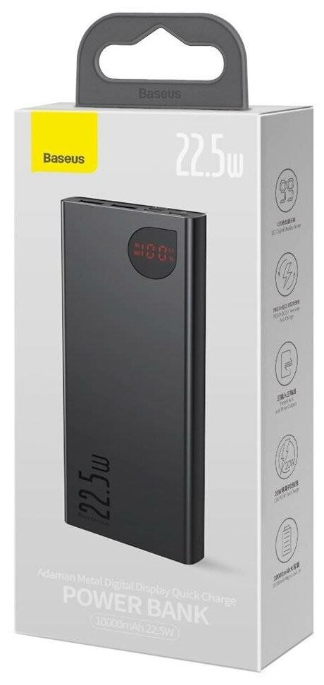 External Power Bank 10000mAh Baseus Adaman Metal Digital Display Quick Charge 22.5W Black black