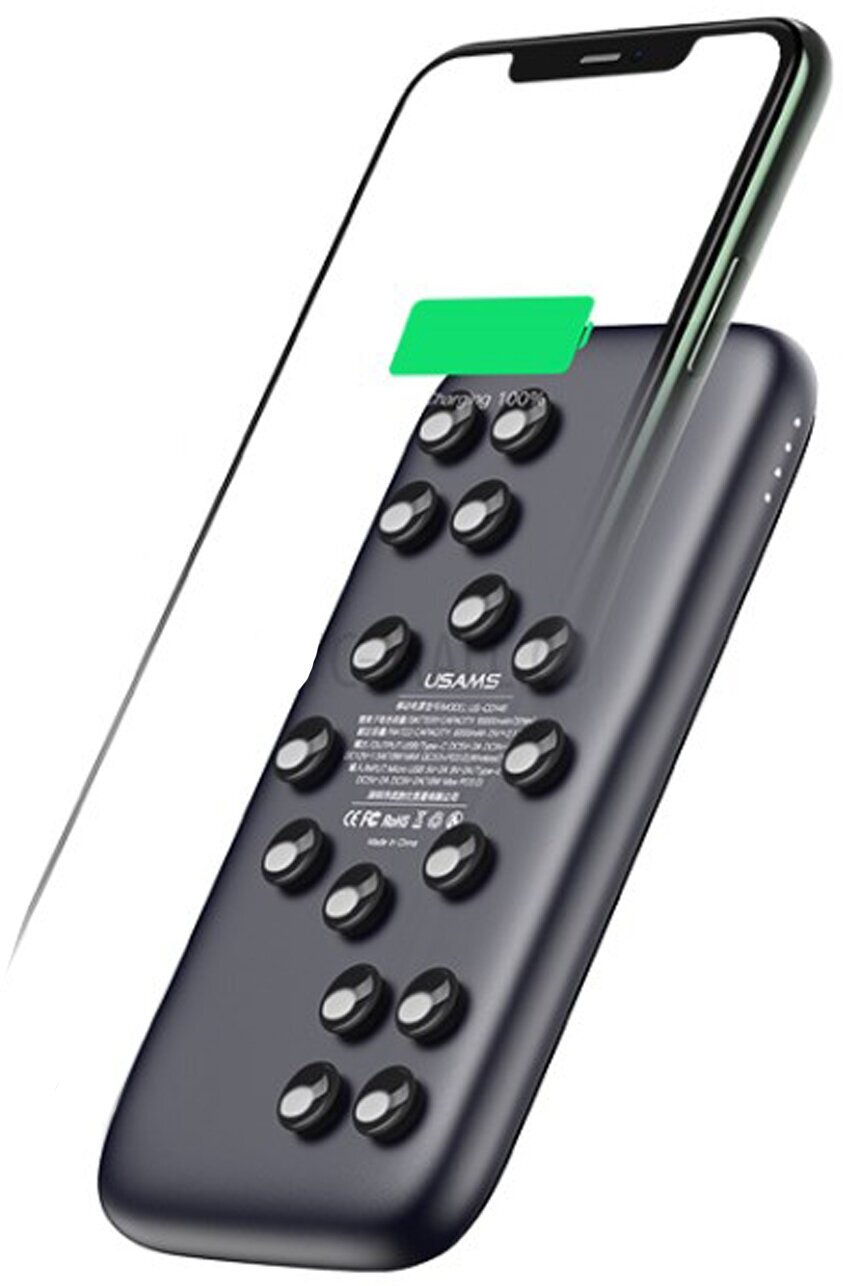 External Battery USAMS US-CD146 PB53 Suction Cups 10000mAh PD QC3.0 Wireless Charging Black