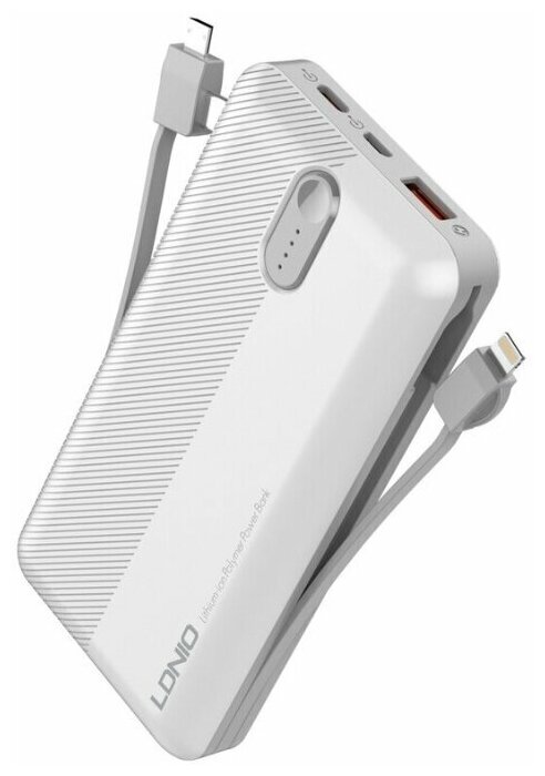 Powerbank 20000mAh + Cable with built-in connectors Micro, Lighting, Type-C White LDNIO PL2014