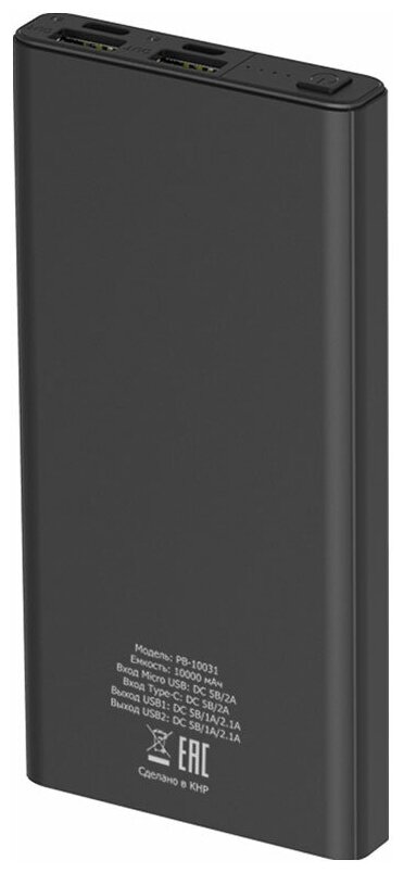Capacity: 10000 mAh, max. output current: 2A, weight: 241g