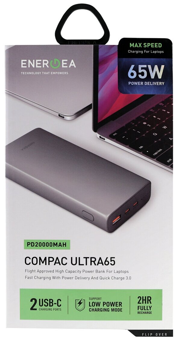 Portable EnergEA Compac Ultra 65 2USB-C PD + USB-A 65W 20000 mAh, Gray CP-ULTRA65-GUN CP-ULTRA65-GUN