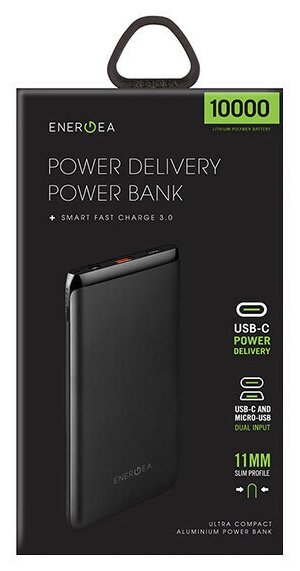 EnergEA Alupac PQ1201 Portable 10000mAh USB QC 3.0 + USB-C PD Black AP-PQ1201-BLK AP-PQ1201-BLK
