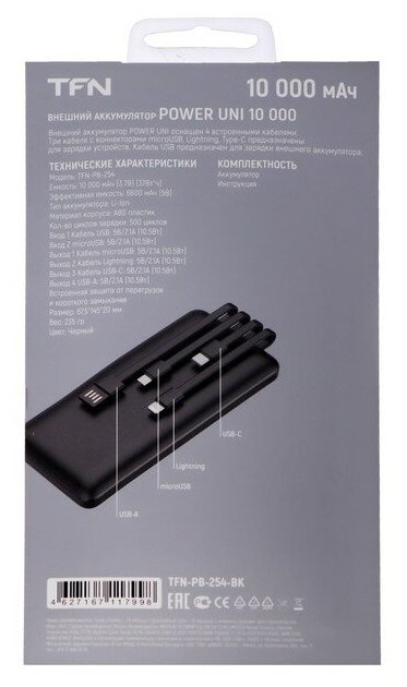 Capacity: 10000 mAh, compatibility: laptop charging, max. output current: 2.10 A, weight: 235 g