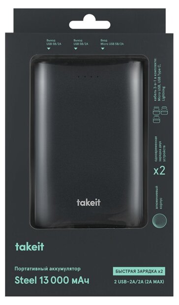 Capacity: 13000 mAh, max. output current: 2A, weight: 325g