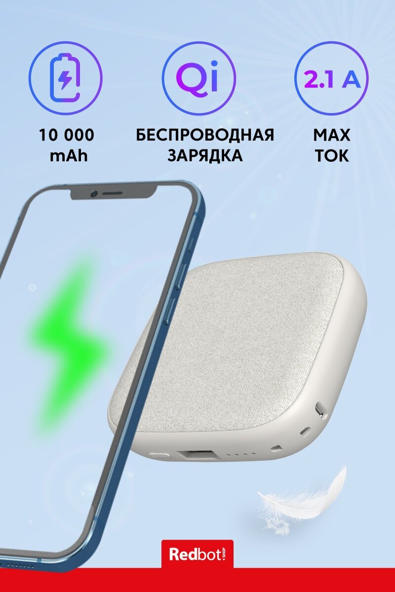 Description: Capacity: 10000 mAh, compatibility: wireless charging, fast charging, max. output current: 2.10 A, weight: 234 g