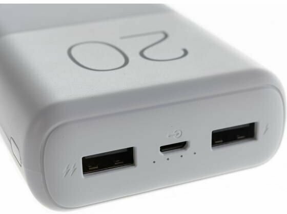 Capacity: 20000 mAh, compatibility: fast charging, max. output current: 2.10 A, weight: 375 g