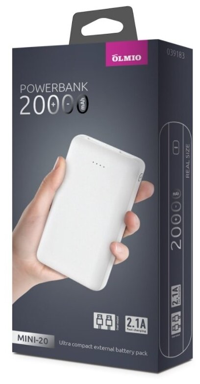 Capacity: 20000 mAh, compatibility: fast charging, max. output current: 2.10 A
