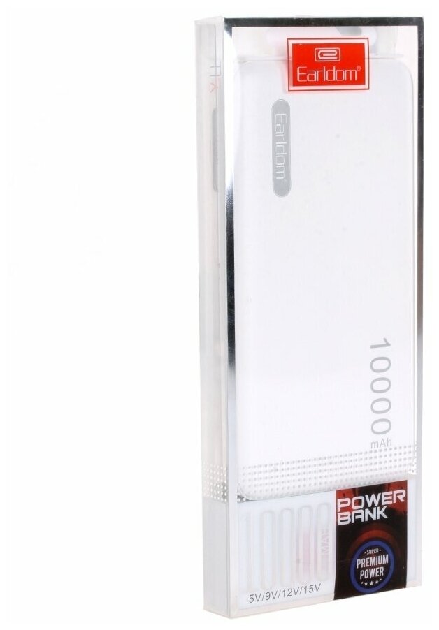 External Earldom ET-EPB18, 10000mAh, plastic, 2 USB outputs, indicator, 2.0A, color: white