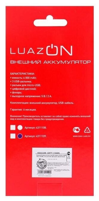 Capacity: 6000 mAh, max. output current: 2A
