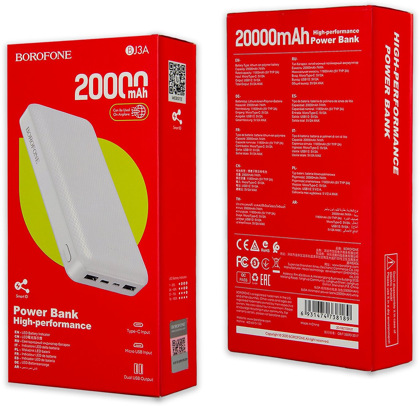 Capacity: 20000 mAh, compatibility: For camcorder, For camera, Universal, max. output current: 2A, features: charging two devices