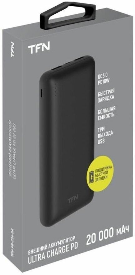 Capacity: 20000 mAh, compatibility: fast charging, max. output current: 3A, weight: 400g