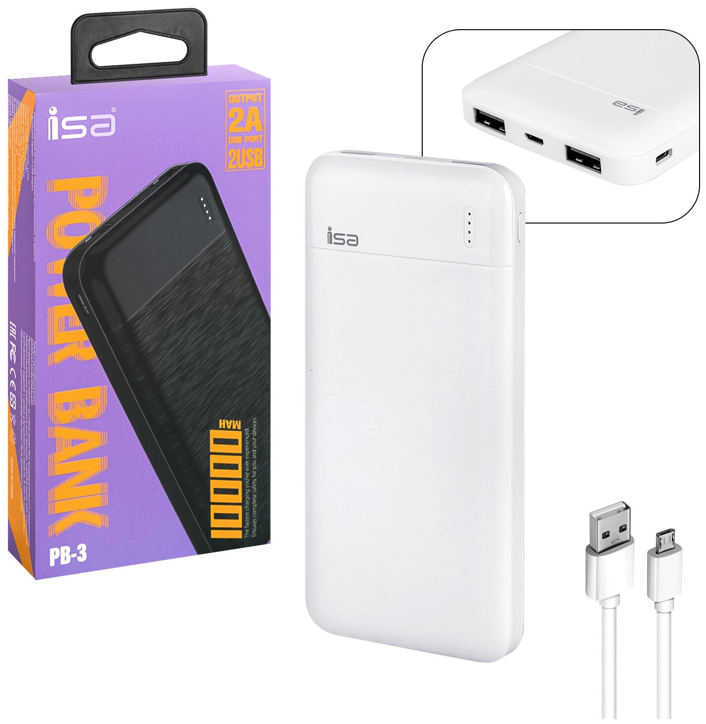 Capacity: 10000 mAh, compatibility: fast charging, max. output current: 2.10 A, weight: 270 g