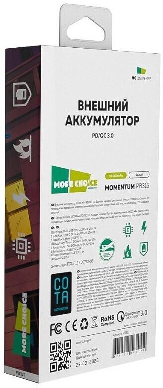 Capacity: 10000 mAh, compatibility: fast charging, laptop charging; fast charge, max. output current: 3A