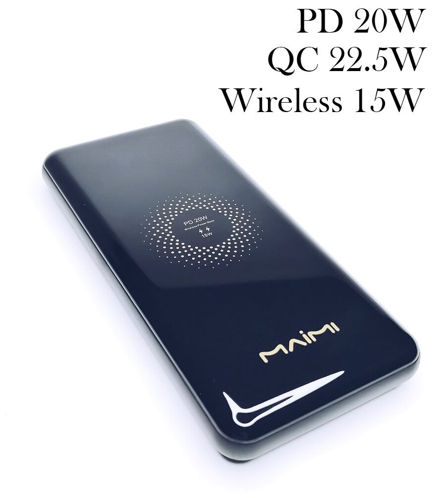 External with wireless charging MAIMI Mi11 / QC 22.5 W / PD 20 W / Wireless Power 18W / black, 10 000 mAh