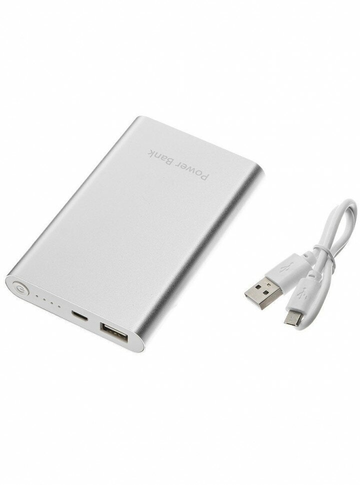 External LuazON, 8000 mAh, USB, 1 A, indicator, slim body, metal, gray