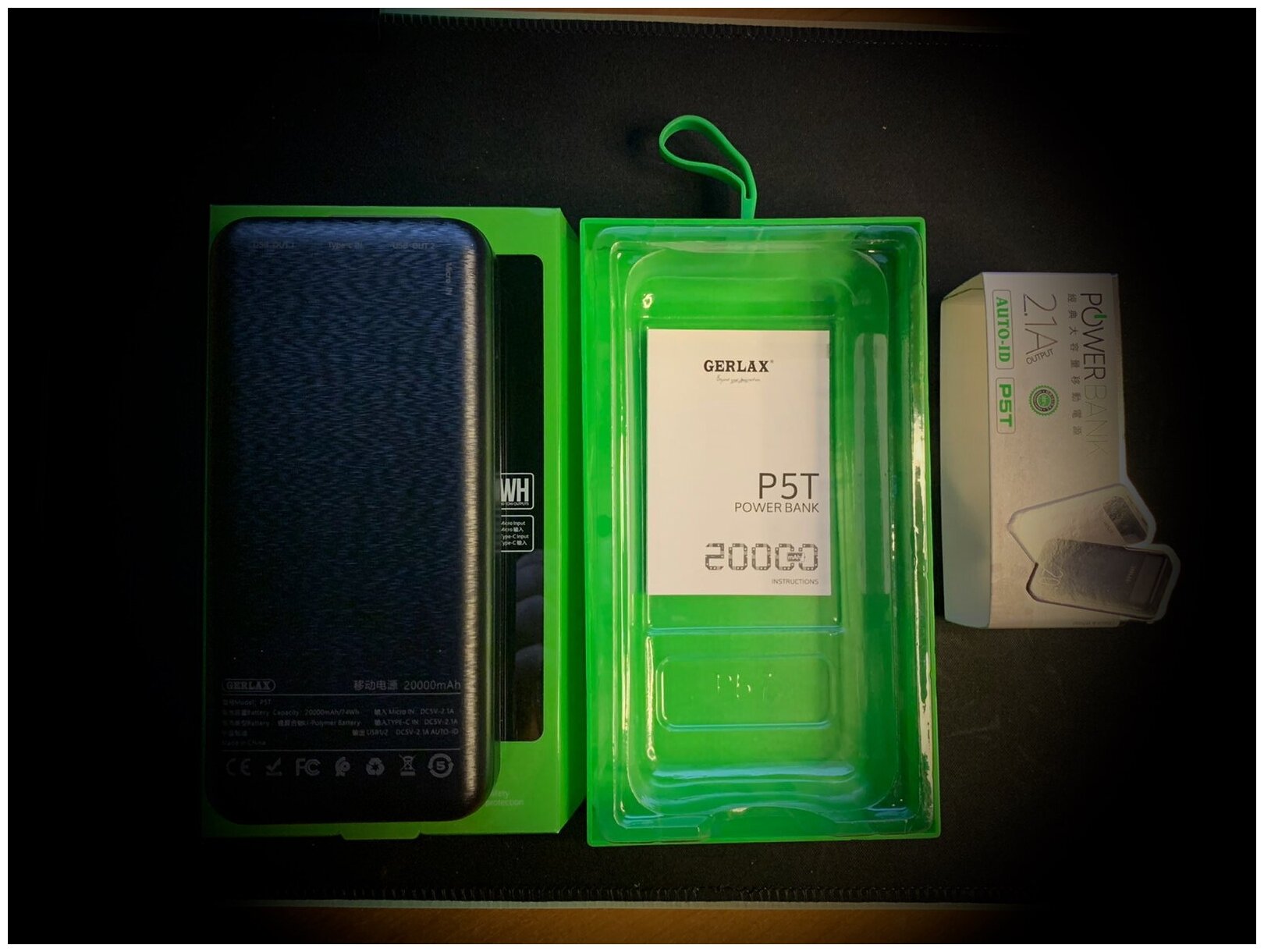 Capacity: 20000 mAh, max. output current: 2.10 A, weight: 402 g