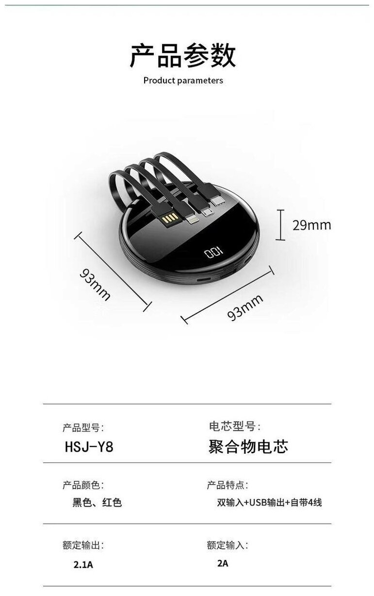 Capacity: 5000 mAh, max. output current: 2A, weight: 220g