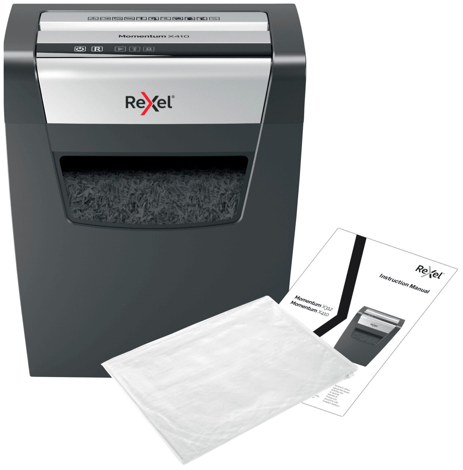 Document shredder Rexel Momentum X410, 4 lvl. 4*28mm, 10 sheets, 23 l, paper clips, staples